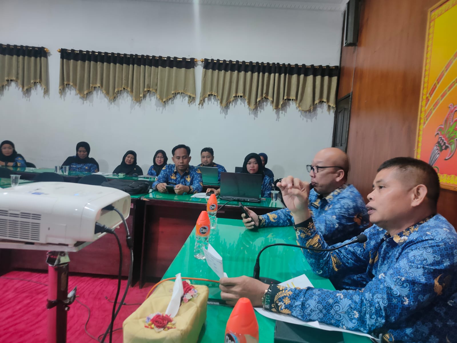 Rapat staf hasil monev ke 6 (enam) kecamatan di Kabupaten Kotawaringin Timur langsung dipimpin oleh Kepala Bapperida Kab.Kotim. Dari hasil monev yang disampaikan oleh masing- masing tim yang melaksanakan survey pembangunan fisik dilapangan masih ada beberapa pekerjaan yang masih dalam proses pekerjaan dan yang belum dilaksanakan. Informasi yang disampaikan oleh tim setelah terjun langsung kelapangan dan berkoordinasi dengan OPD terkait, bahwa sebagian kegiatan dilaksanakan setelah perubahan anggaran. Kepala Bapperida mengintruksikan dalam rapat agar terus berkoordinasi dengan OPD terkait perihal pekerjaan yang masih dalam proses pelaksanaan dan pekerjaan yang batal dilaksanakan, pantau, cari kendala dan permasalahannya serta dilaporkan akhir pelaksanaan pekerjaan tersebut katanya